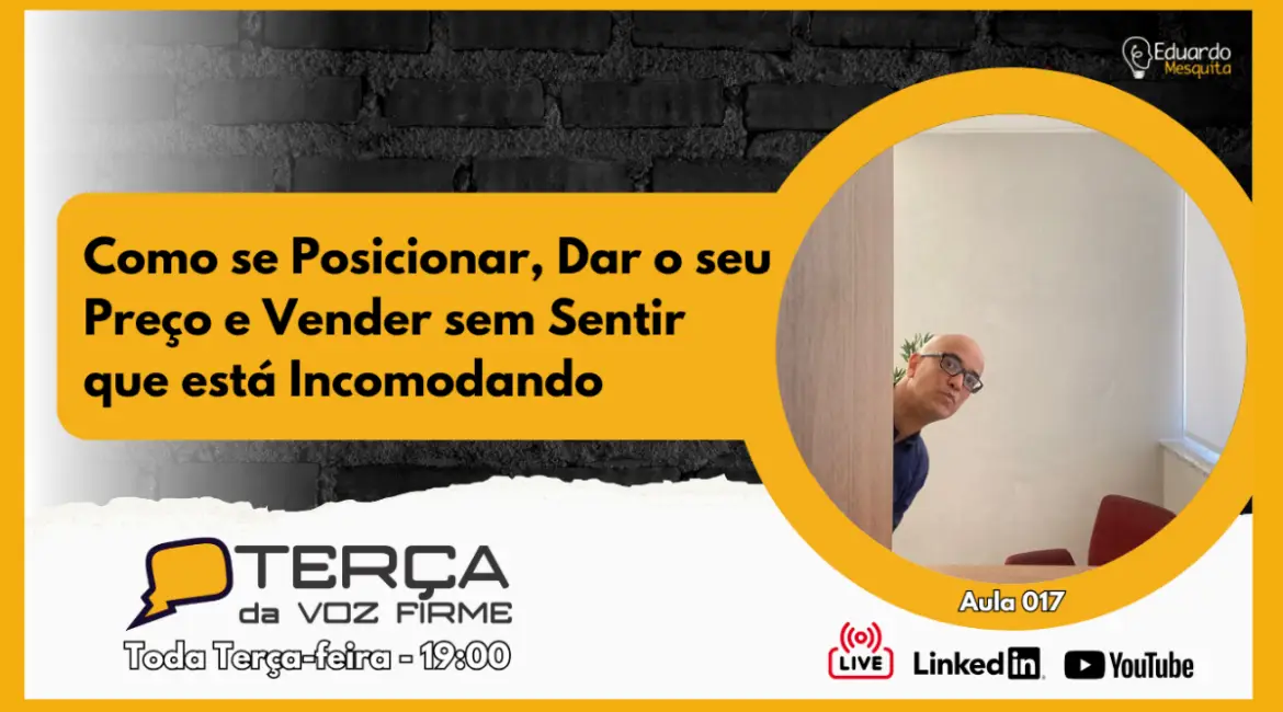 O seu objetivo deve ser construir um posicionamento que justifica o seu preço. Quando sua imagem, sua fala e sua entrega estão alinhadas, o preço alto deixa de ser um obstáculo e se torna a única conclusão lógica. O cliente pensa: “Se ele é o melhor naquilo que faz, o valor é este”.